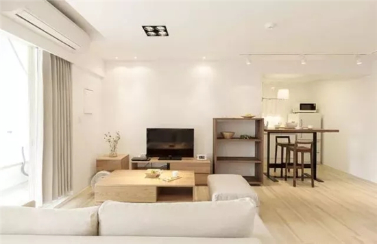 相比北欧,日式的色彩是严谨的,它更加柔和、克制、安静、清新。日式风格以原木色为基底,配色均与原木色相近。